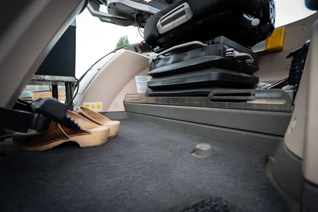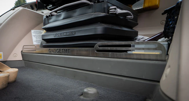 Die Schiene ist aus hochwertigem Edelstahl gearbeitet und lässt sich ganz einfach in der Kabine platzieren. Dazu wird der Fahrersitz gelöst und leicht angehoben, damit die Schiene direkt darunter geklemmt werden kann.